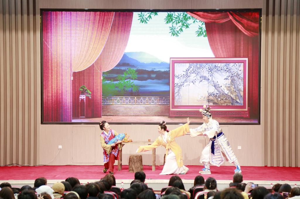 本次活動以專題講座的形式,將戲曲理論講解、經(jīng)典片段展示和演員觀眾互動融合在一起。劇團國家一級演員—著名龍江劇表演藝術(shù)家欒蘭從龍江劇起源、龍江劇人物、龍江劇功課、龍江劇片段等角度為現(xiàn)場師生普及了龍江劇知識。省龍江劇藝術(shù)中心的演員們表演了原創(chuàng)大型龍江劇《木蘭傳奇》之《紅劍穗》《孫猴借寶》《宗寶戲妻》等品牌劇目的經(jīng)典片斷,向師生們展示了龍江劇的獨特魅力。