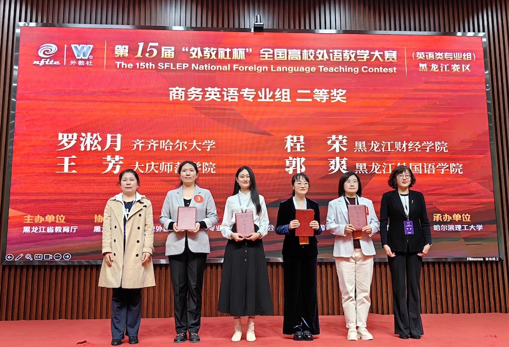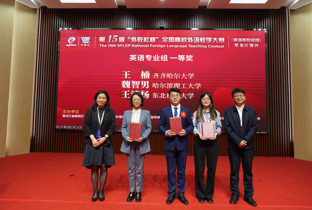 日前,由黑龍江省教育廳主辦,黑龍江省高等學(xué)校外國語言文學(xué)類專業(yè)教學(xué)指導(dǎo)委員會、黑龍江省外國語學(xué)會和上海外語教育出版社協(xié)辦,哈爾濱理工大學(xué)承辦的第十五屆“外教社杯”全國高校外語教學(xué)大賽(英語類專業(yè)組)黑龍江賽區(qū)決賽落下帷幕。經(jīng)過激烈的角逐,來自全省各大高校英語專業(yè)組10位優(yōu)秀教師和商務(wù)英語組7位優(yōu)秀教師入圍黑龍江賽區(qū)的決賽。最終,我校外國語學(xué)院教師王楠榮獲英語專業(yè)組一等獎(jiǎng),青年教師羅淞月榮獲商務(wù)英語組二等獎(jiǎng)。