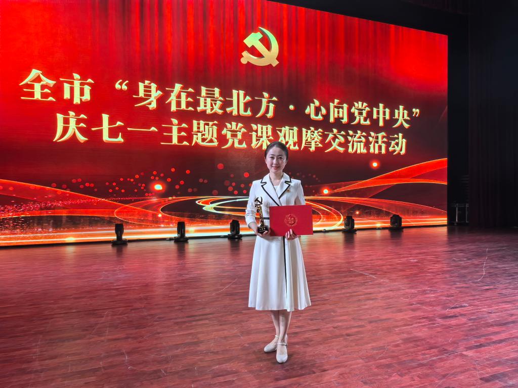7月5日,齊齊哈爾市委組織部組織開展全市“身在最北方·心向黨中央”慶七一主題黨課觀摩交流活動(dòng),我校音樂與舞蹈學(xué)院舞蹈系教師黨支部書記李美虹的黨課《學(xué)習(xí)紅船精神,傳承紅色基因》經(jīng)過初賽、復(fù)賽,從13支決賽隊(duì)伍中脫穎而出,榮獲二等獎(jiǎng)。