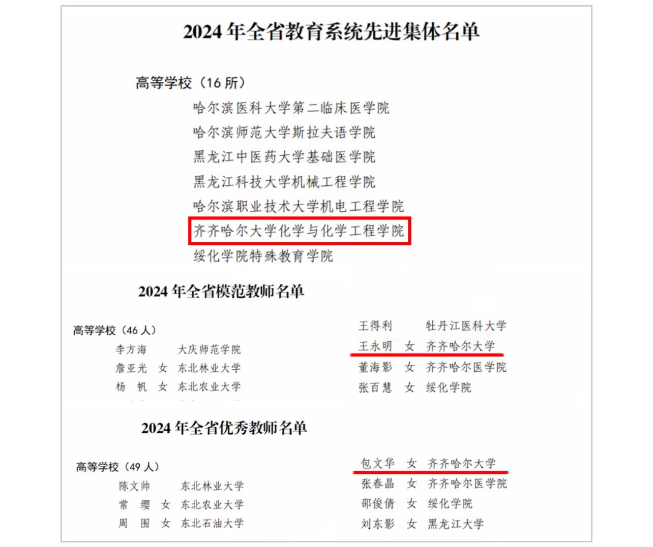 近日,省人力資源社會(huì)保障廳、省教育廳公布了2024年全省教育系統(tǒng)先進(jìn)集體和先進(jìn)個(gè)人擬表彰對(duì)象,我?;瘜W(xué)與化學(xué)工程學(xué)院榮獲“2024年度全省教育系統(tǒng)先進(jìn)集體”榮譽(yù)稱號(hào),馬克思主義學(xué)院王永明教授榮獲“2024年全省模范教師”榮譽(yù)稱號(hào),音樂(lè)與舞蹈學(xué)院包文華教授榮獲“2024年全省優(yōu)秀教師”榮譽(yù)稱號(hào)。