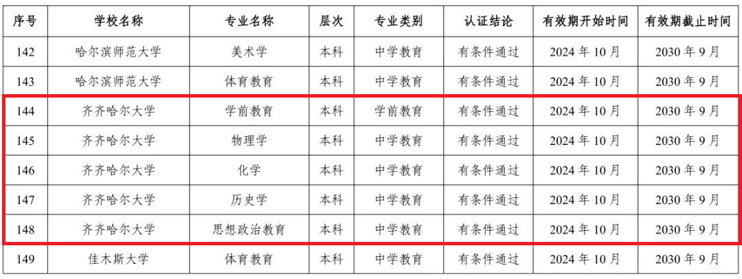 近日,教育部辦公廳發(fā)布《關(guān)于公布2024年通過(guò)普通高等學(xué)校師范類(lèi)專(zhuān)業(yè)認(rèn)證及認(rèn)證中期審核專(zhuān)業(yè)名單的通知》(教師廳函〔2024〕20號(hào)),我校學(xué)前教育、物理學(xué)、化學(xué)、歷史學(xué)、思想政治教育等5個(gè)專(zhuān)業(yè)通過(guò)教育部師范類(lèi)專(zhuān)業(yè)第二級(jí)認(rèn)證,認(rèn)證結(jié)論有效期為2024年10月至2030年9月;生物科學(xué)專(zhuān)業(yè)通過(guò)中期考核,繼續(xù)保持有效期至2027年8月。