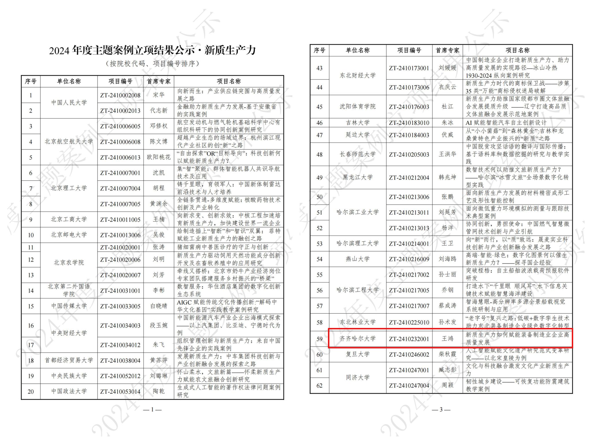 近日,教育部學(xué)位與研究生教育發(fā)展中心公布了2024年度主題案例征集立項(xiàng)結(jié)果。我校經(jīng)濟(jì)與管理學(xué)院王鴻教授作為首席專家申報(bào)的主題案例項(xiàng)目《新質(zhì)生產(chǎn)力如何賦能裝備制造業(yè)企業(yè)高質(zhì)量發(fā)展》成功獲批立項(xiàng),實(shí)現(xiàn)了我校在教育部學(xué)位中心主題案例立項(xiàng)中零的突破。