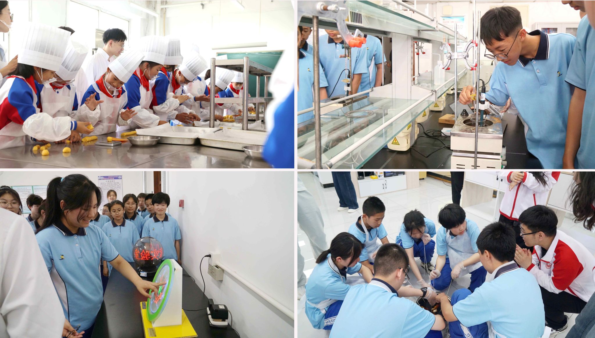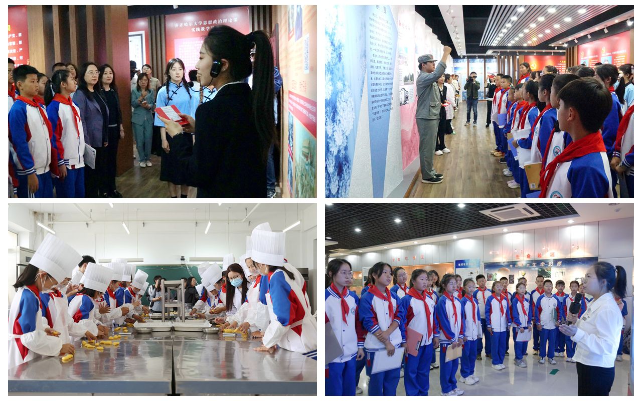 鐵鋒區(qū)人民小學(xué)學(xué)生來(lái)到延德樓焙烤工藝實(shí)驗(yàn)室,開(kāi)展“玉米黃金酥制作”勞動(dòng)教育課程。小學(xué)生與大學(xué)生協(xié)作完成玉米黃金酥制作,通過(guò)勞動(dòng)親身體驗(yàn)“一粥一飯當(dāng)思來(lái)之不易”的深刻內(nèi)涵。在等待烘焙完成間隙,師生們走進(jìn)生命科學(xué)館,聆聽(tīng)由大學(xué)生講解員講述的“守護(hù)黑土 筑夢(mèng)家國(guó)”與“鶴魂青春 榜樣力量”微思政課,以習(xí)近平生態(tài)文明思想為指導(dǎo),將“綠水青山就是金山銀山”的生態(tài)智慧與“家國(guó)同心”的情懷擔(dān)當(dāng)有機(jī)融入科普教育。