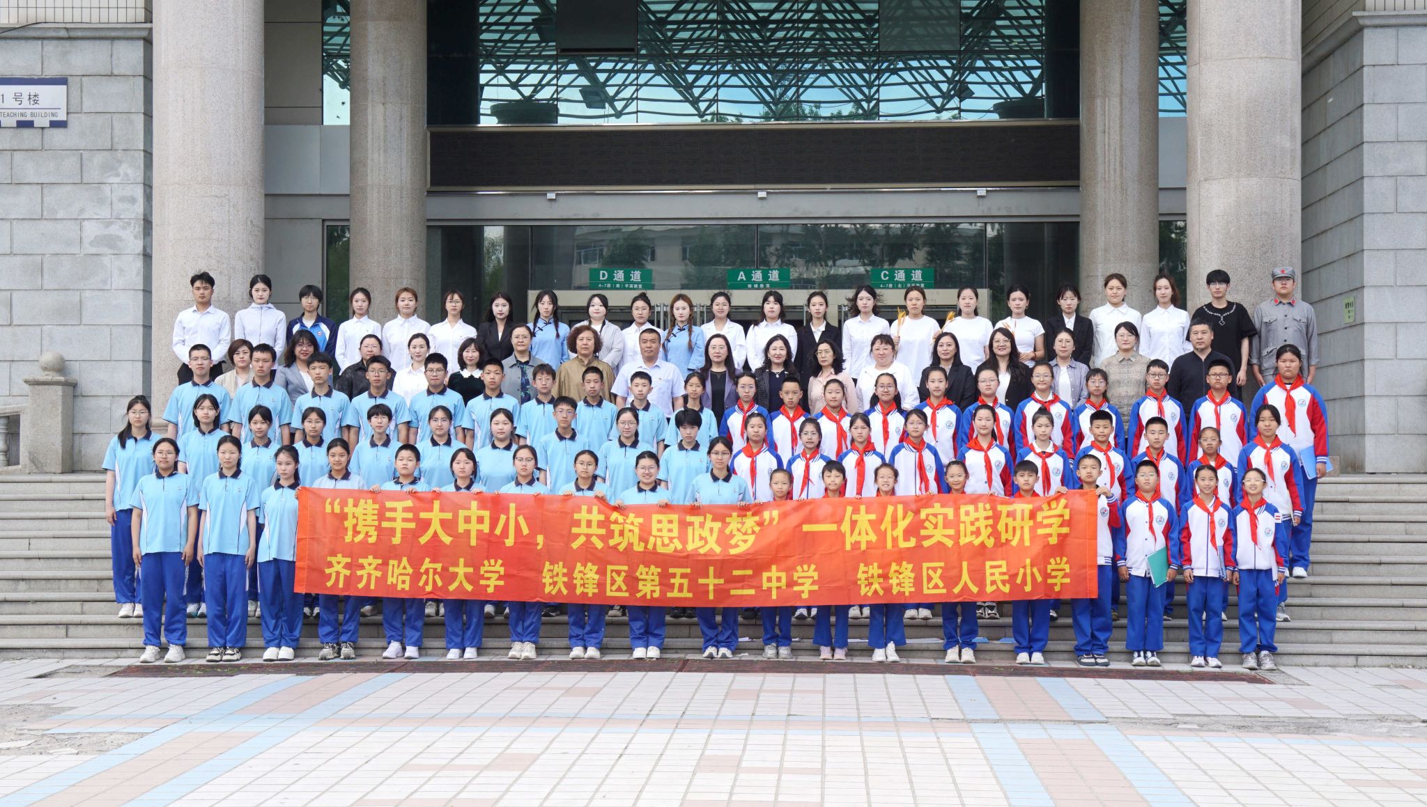 6月5日,我校成功舉辦大中小學(xué)思想政治教育一體化建設(shè)實(shí)踐研學(xué)活動(dòng),市第五十二中學(xué)、鐵鋒區(qū)人民小學(xué)60余名師生代表以及我校師生代表共計(jì)百余人參與其中,校黨委書(shū)記丁宏、黨委副書(shū)記齊宏偉參加活動(dòng)。