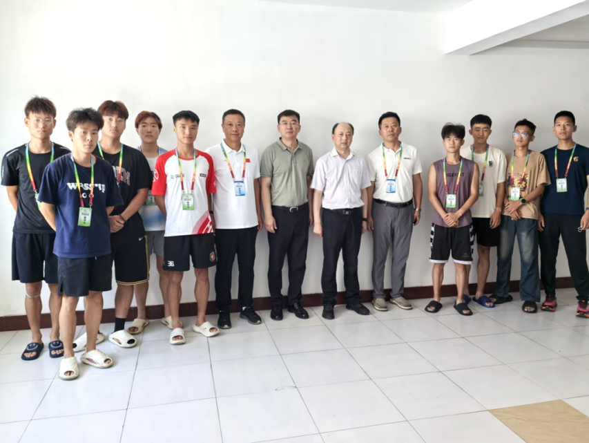 范鐵明一行來到代表團(tuán)駐地,詳細(xì)詢問隊員們的住宿、餐飲、訓(xùn)練恢復(fù)及賽事安排等情況,對大家展現(xiàn)出的飽滿精神和昂揚斗志表示高度贊賞,并與教練員、運動員們親切交談。他寄語參賽師生:“弘揚體育精神,嚴(yán)守賽風(fēng)賽紀(jì),堅定必勝信心,賽出齊大風(fēng)采!”叮囑參賽隊員們,務(wù)必做好防曬降溫等自我防護(hù),要求體育學(xué)院全力做好后方支援,解決運動員后顧之憂,做代表團(tuán)的堅強后盾。