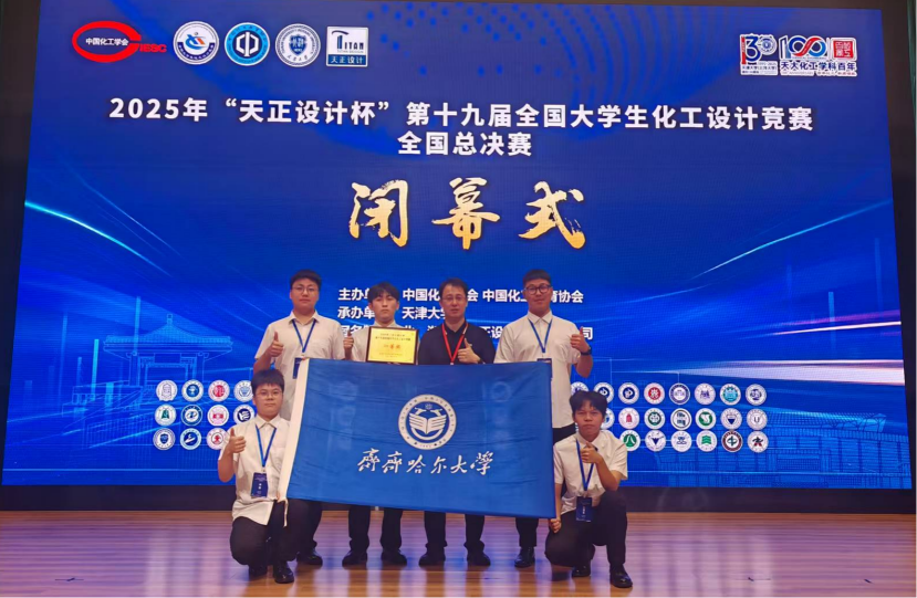 8月11日至17日,由中國(guó)化工學(xué)會(huì)、中國(guó)化工教育協(xié)會(huì)主辦,天津大學(xué)承辦的第十九屆全國(guó)大學(xué)生化工設(shè)計(jì)競(jìng)賽全國(guó)總決賽順利舉辦。在我?;瘜W(xué)與化學(xué)工程學(xué)院李金龍、鄧慶芳、張宇、趙振龍、許廣等教師的精心指導(dǎo)下,由化學(xué)工程與工藝專業(yè)王志鵬、謝展、李文彬、王詩(shī)勇、曹佳鑫5名本科生組成的“砜學(xué)未來(lái)”團(tuán)隊(duì)歷時(shí)8個(gè)月的努力,經(jīng)過(guò)多輪選拔,現(xiàn)場(chǎng)答辯等環(huán)節(jié),最終榮獲全國(guó)大學(xué)生化工設(shè)計(jì)競(jìng)賽全國(guó)一等獎(jiǎng)的佳績(jī)。