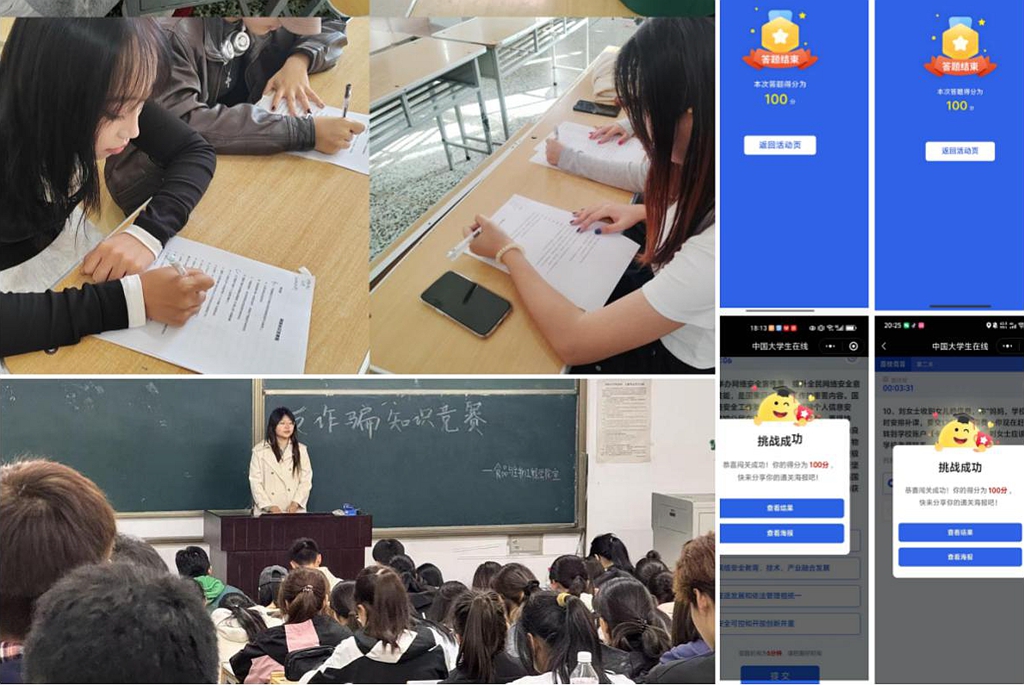 宣傳周期間,學(xué)校組織師生通過中國大學(xué)生在線參與網(wǎng)絡(luò)安全知識答題活動,普及防詐騙、防非法校園貸等知識。計(jì)算機(jī)與控制工程學(xué)院、食品與生物工程學(xué)院等單位還組織開展網(wǎng)絡(luò)安全知識競賽,涵蓋法規(guī)、案例應(yīng)急處置等內(nèi)容,以賽促學(xué);文學(xué)與歷史文化學(xué)院(新聞傳播學(xué)院)、外國語學(xué)院等單位開展創(chuàng)意作品征集,收到微視頻、宣傳海報(bào)、手抄報(bào)等作品,以視覺化形式闡釋網(wǎng)絡(luò)安全重要性。