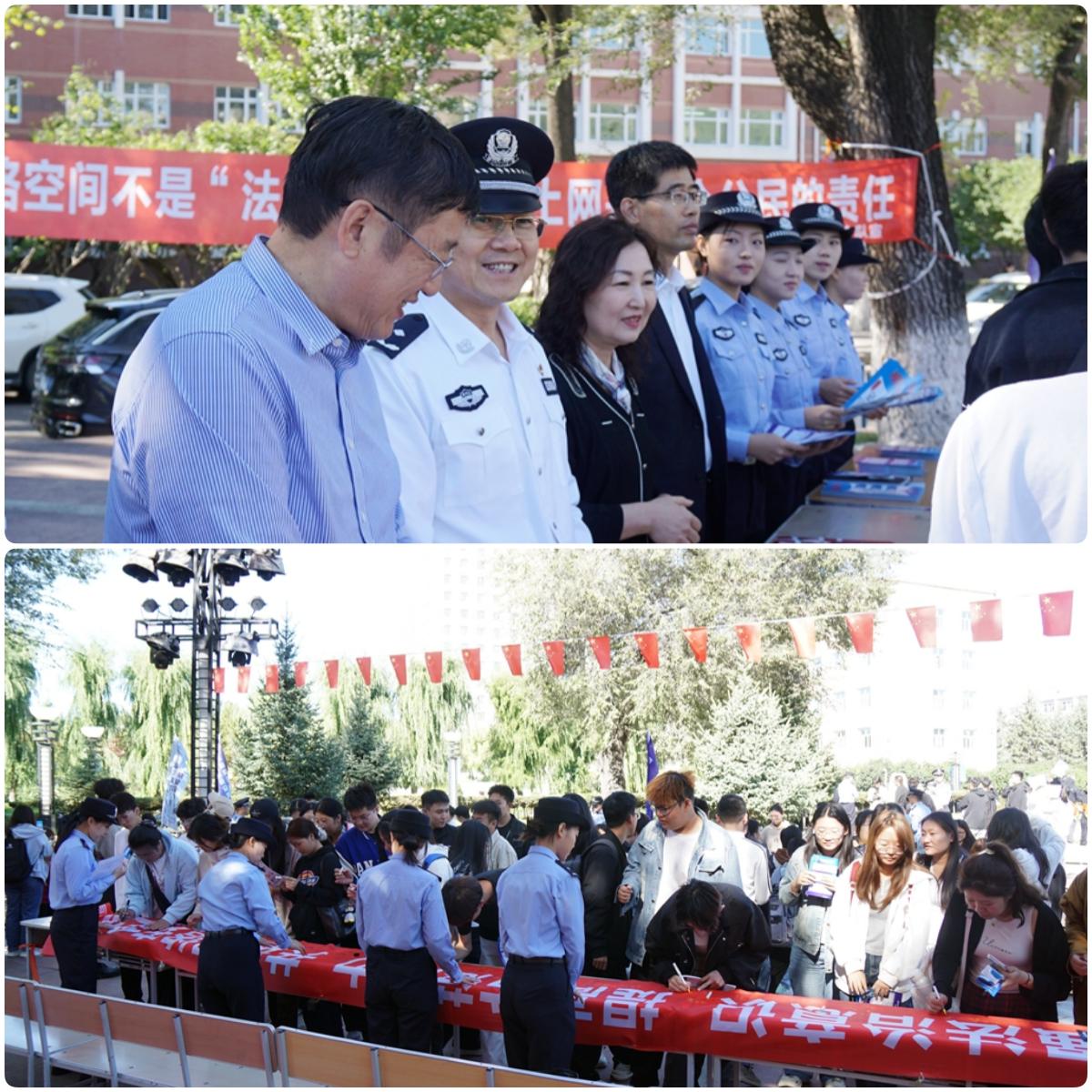 9月18日上午,學(xué)校黨委宣傳部、武裝部(保衛(wèi)處)、學(xué)生工作部(學(xué)生處)聯(lián)合齊齊哈爾市公安局網(wǎng)安支隊(duì),在三致廣場舉辦“數(shù)智互聯(lián)、安全共享”網(wǎng)絡(luò)安全與反詐騙宣傳活動,校領(lǐng)導(dǎo)、職能部門負(fù)責(zé)人和廣大師生共同參與?;顒油ㄟ^“線上+線下”模式,設(shè)立宣傳咨詢臺、圖文展板,LED屏循環(huán)播放網(wǎng)絡(luò)安全教育視頻。民警結(jié)合高校多發(fā)電信詐騙案例,發(fā)放宣傳手冊,指導(dǎo)師生下載注冊“國家反詐中心”APP并開啟預(yù)警功能。師生踴躍在橫幅上簽名,承諾共建清朗網(wǎng)絡(luò)空間。