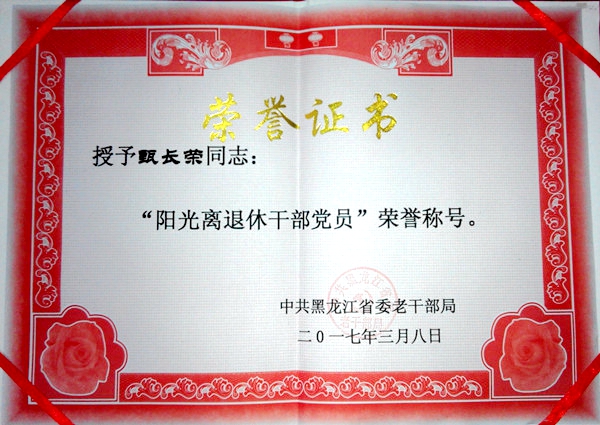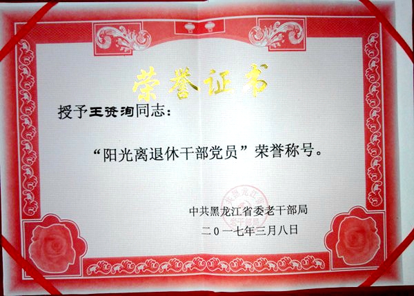 3月31日,全省老干部局長(zhǎng)會(huì)議在哈爾濱召開,中共黑龍江省委老干部局對(duì)全省離退休干部黨員進(jìn)行了表彰,共有103人獲得“陽光離退休干部黨員”榮譽(yù)稱號(hào),我校退休老黨員王資洵、甄長(zhǎng)榮獲此殊榮。