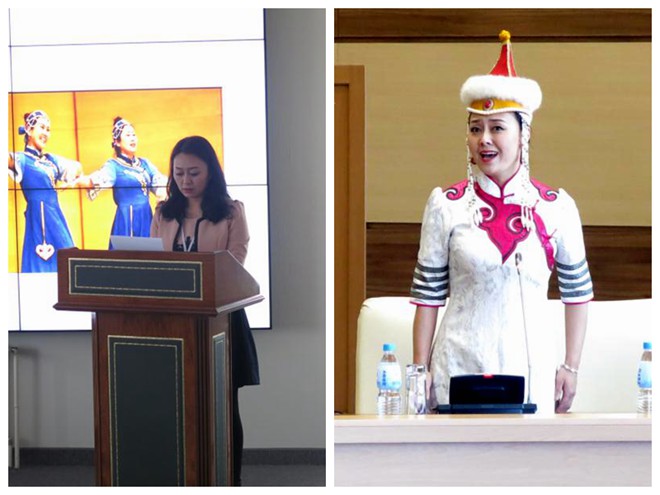 朱艷彬教授結(jié)合發(fā)言內(nèi)容演唱了一首達斡爾族最具代表性的傳統(tǒng)民歌《心上人》,贏得了與會人員高度贊譽。與會期間,李延齡教授應邀會見了我國駐海參崴總領(lǐng)事閆文濱,就旅俄華人研究問題交換了意見。