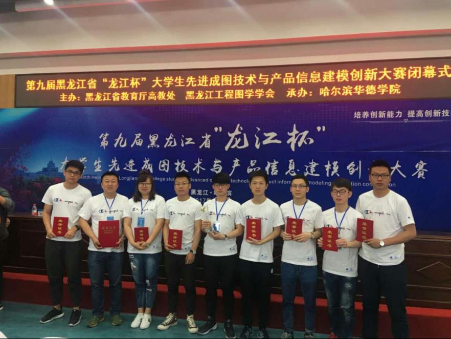 2017年6月3日,第九屆黑龍江省"龍江杯"大學(xué)生先進(jìn)成圖技術(shù)與產(chǎn)品信息建模創(chuàng)新大賽在哈爾濱華德學(xué)院圓滿落幕。大賽由黑龍江省教育廳高教處和黑龍江工程圖學(xué)學(xué)會共主辦,共分機(jī)械類和建筑類兩類競賽。我校機(jī)械類代表隊榮獲團(tuán)體一等獎1項、個人全能一等獎7項,建筑類代表隊榮獲團(tuán)體二等獎1項、個人單項一等獎1項、二等獎6項。