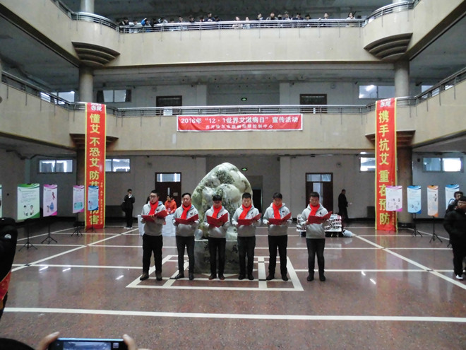 為加強(qiáng)我省學(xué)校艾滋病防治宣傳教育工作,營(yíng)造積極向上的預(yù)防與防治氛圍,2016年“世界艾滋病日”宣傳活動(dòng)期間,省衛(wèi)生計(jì)生委和省教育廳聯(lián)合發(fā)起了全省學(xué)校艾滋病防治宣傳月暨高校預(yù)防艾滋病辯論比賽活動(dòng)。接到通知后,我校高度重視,組織相關(guān)部門開(kāi)展了各類防艾活動(dòng):2016年“12.1”世界艾滋病日,后勤管理處與市疾病控制中心以我校西區(qū)主樓陽(yáng)光大廳作為宣傳主會(huì)場(chǎng),采取多種方式進(jìn)行了防控宣傳,并在活動(dòng)結(jié)束后進(jìn)行了全市高校的艾滋病發(fā)病情況通報(bào)。
