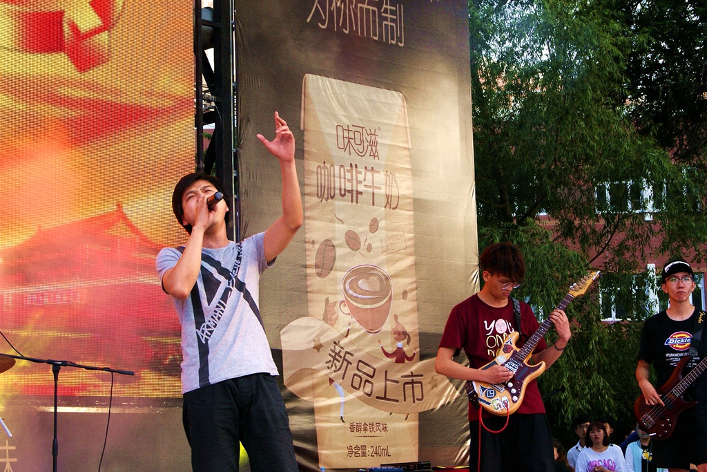 紅歌過后現(xiàn)場觀眾的熱情依舊不減,緊接著齊齊哈爾醫(yī)學(xué)院YOLO樂隊為我們帶來另一場驚喜。由樂隊男主唱馬廣超首打頭陣,一曲《傷心的人別聽慢歌》嗨翻全場,歌曲《像風(fēng)一樣自由》徹底活絡(luò)了現(xiàn)場觀眾的音樂筋絡(luò)。一曲作罷,由樂隊女主唱曹溪若帶來的《匆匆那年》和《七里香》又帶觀眾走進(jìn)愛情的世界,品味愛情甜美,嘗盡人生苦辣,聲音細(xì)膩,歌聲悠長,婉轉(zhuǎn)動聽。