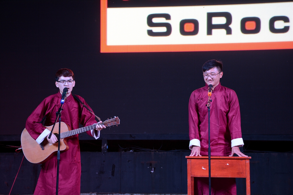張思遠(yuǎn)等組成的火柴樂隊(duì)火爆開場,在重金屬和強(qiáng)勁節(jié)奏感的撞擊下,演唱的歌曲《自由》、《不歸路》和《長安夜》完美地詮釋了這個(gè)意義。震撼人心的表演,點(diǎn)燃了臺下觀眾的熱情,動(dòng)感的音樂告訴2017級的學(xué)弟學(xué)妹們,既然選擇遠(yuǎn)方,便不懼任何阻擋。