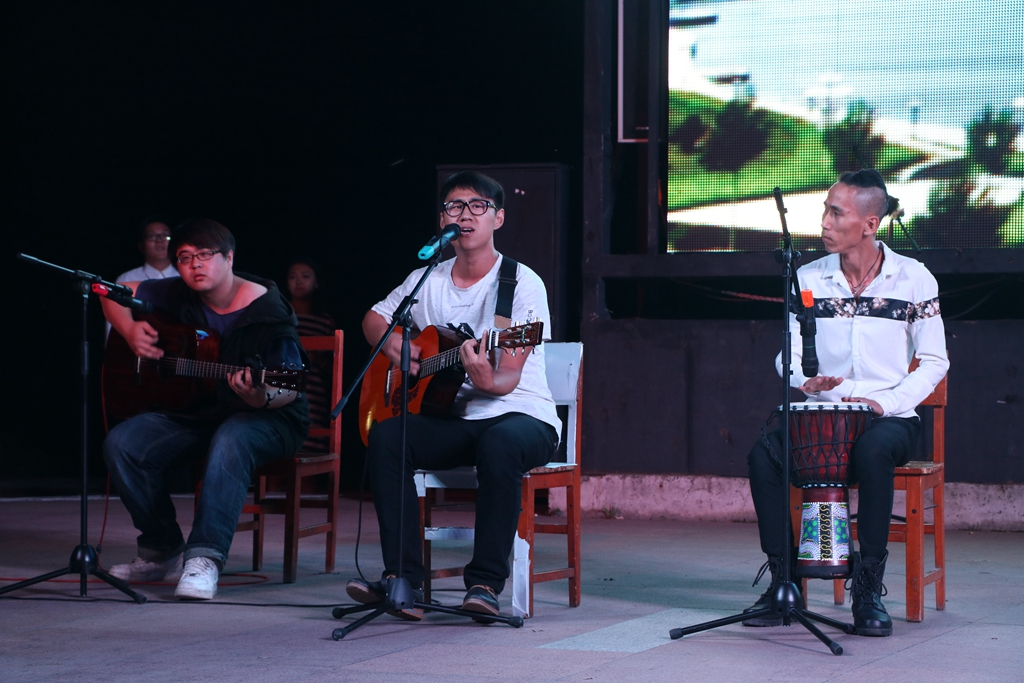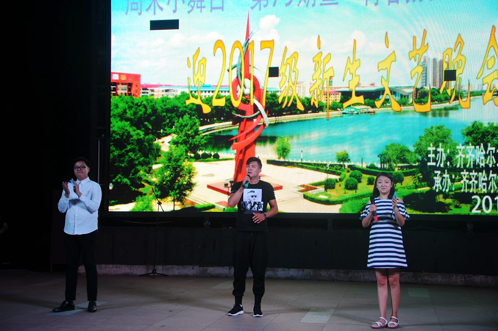 羅猛和范棋森帶來的相聲《我愛搖滾樂》,以其相聲形式的搖滾樂,獨(dú)特新創(chuàng)意打破了人們原先對于相聲的定義,他們的精彩表演也贏得了在場師生的喝彩。一曲《涼涼》耳熟能詳,在劉留吹奏笛聲的配合下,劉書衡同學(xué)卻用男女聲轉(zhuǎn)換的方式完美演繹,女聲部分聲音清澈動(dòng)聽,男聲部分低沉雄厚,讓人們耳目一新。2016級舞蹈專業(yè)馬家慧、李梓童、唐慧如等帶來了《彩云之南》,舞蹈輕盈優(yōu)美,婀娜多姿,美輪美奐。兩位畢業(yè)生顏佳豪和李龍生帶來的原創(chuàng)歌曲《大學(xué)你好》,衷心祝賀2017級新生進(jìn)入美麗的齊齊哈爾大學(xué),希望學(xué)弟學(xué)妹們擁有不一樣的四年。