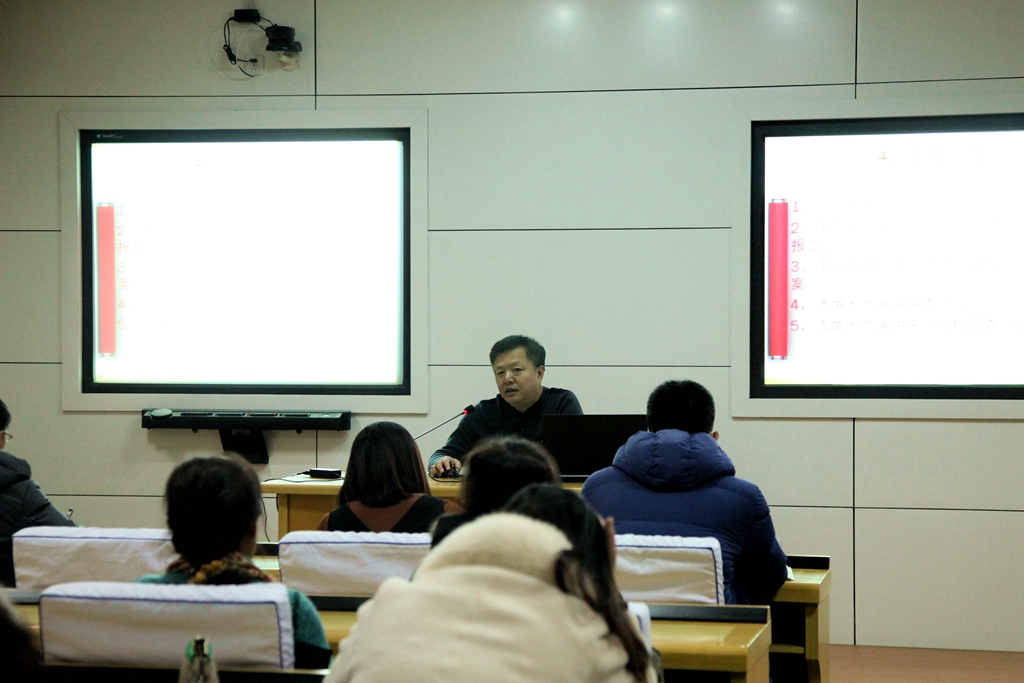 在東區(qū)圖書館8樓報告廳,校黨的十九大精神宣講團(tuán)成員、哲學(xué)與法學(xué)學(xué)院政治學(xué)與行政學(xué)專業(yè)徐鳳江副教授以《深入推進(jìn)新時代黨的建設(shè)的偉大工程》為題,在講述了新時代全面加強(qiáng)黨的建設(shè)的必要性、黨的十八大以來黨的建設(shè)的重要手段、措施及成就后,著重解讀了新時代黨的建設(shè)的總要求、新時代黨的建設(shè)的八項重點任務(wù)。他指出,學(xué)習(xí)領(lǐng)會黨的十九大精神,要緊緊圍繞習(xí)近平新時代中國特色社會主義思想這個主線,堅持讀原著、學(xué)原文、悟原理,做到學(xué)深悟透。通過學(xué)習(xí)引導(dǎo)全黨自覺維護(hù)習(xí)近平總書記作為黨中央的核心、全黨的核心地位,維護(hù)黨中央權(quán)威和集中統(tǒng)一領(lǐng)導(dǎo)。把師生的思想和行動統(tǒng)一到黨的十九大精神上來,把力量凝聚到黨的十九大確定的各項任務(wù)上來。圖書館全體教職工參加了宣講活動。