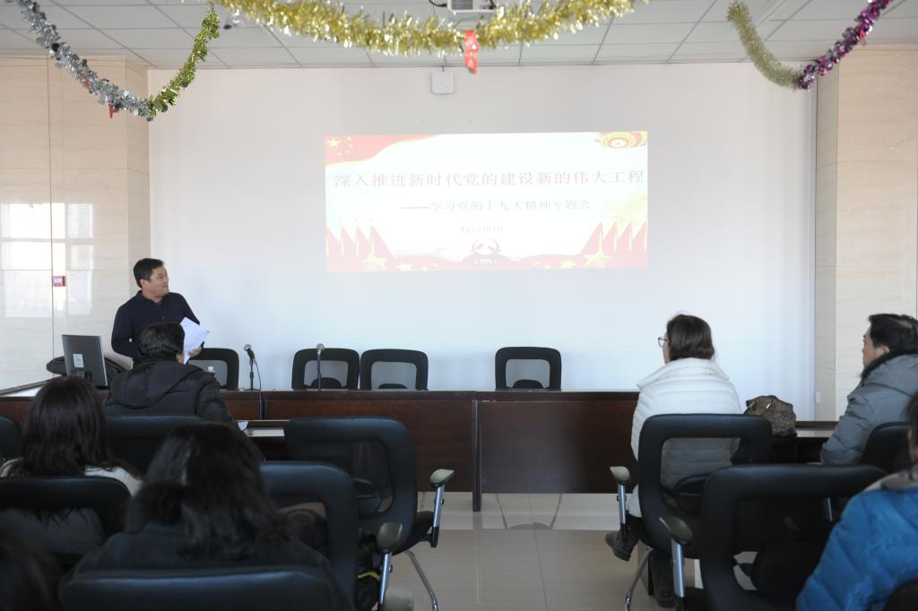 在西區(qū)1教615會議室,校黨的十九大精神宣講團(tuán)成員、科技處副處長、博士、碩士生導(dǎo)師伊全勝教授以《學(xué)習(xí)貫徹黨的十九大精神推進(jìn)高水平大學(xué)建設(shè)》為題,從黨的十九大概況、主題,黨的十九大提出的新理念、新判斷、新目標(biāo),扎實推進(jìn)我校作風(fēng)整頓工作、推進(jìn)有特色高水平教學(xué)研究型綜合大學(xué)建設(shè)等內(nèi)容對黨的十九大精神進(jìn)行了全面、深入的講解。他指出,學(xué)習(xí)黨的十九大精神,要在學(xué)懂弄通上下功夫,要在理論聯(lián)系實際上下功夫。要適應(yīng)新時代中國特色社會主義的發(fā)展要求,明確歷史方位,增強(qiáng)“四個意識”,勇于擔(dān)當(dāng),務(wù)實干事,在推進(jìn)高水平大學(xué)建設(shè)中,堅決貫徹落實黨的十九大確定的大政方針、發(fā)展戰(zhàn)略、政策措施?,F(xiàn)代教育技術(shù)中心全體教職工參加了宣講活動。