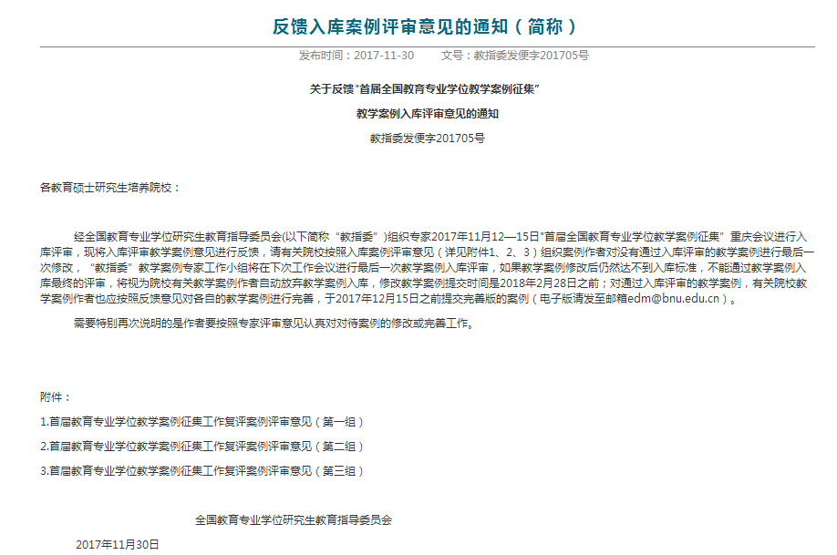 近日,全國教育專業(yè)學(xué)位研究生教育指導(dǎo)委員會(huì)發(fā)布了《關(guān)于反饋"首屆全國教育專業(yè)學(xué)位教學(xué)案例征集”教學(xué)案例入庫評審意見的通知》,我校外國語學(xué)院李凱華、王云老師共同提交的《W老師的一堂高中英語任務(wù)型教學(xué)課》教學(xué)案例成功入選中國專業(yè)學(xué)位教學(xué)案例中心案例庫,成為我校首篇入庫案例。