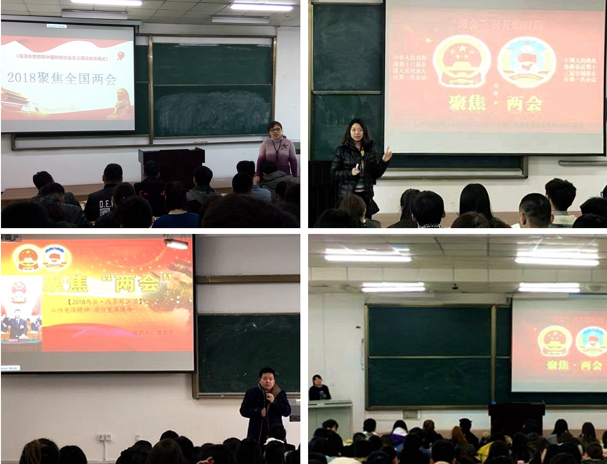 為了充分發(fā)揮思想政治理論課在大學(xué)生成長成才過程中的育人作用,增強(qiáng)思想政治理論課教學(xué)實(shí)效性。馬克思主義學(xué)院及時(shí)把“兩會”的最新內(nèi)容納入思想政治理論課課程教學(xué)內(nèi)容中,實(shí)現(xiàn)“兩會”精神進(jìn)課堂,實(shí)現(xiàn)全方位、全過程、全覆蓋育人,切實(shí)推進(jìn)“兩會”精神入腦入心。