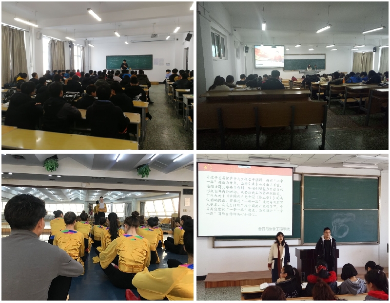 經(jīng)濟(jì)與管理學(xué)院團(tuán)委和機(jī)電工程學(xué)院團(tuán)委,利用課前五分鐘,通過(guò)宣講、主題演講、微視頻等豐富的形式,讓同學(xué)們更好的學(xué)習(xí)黨的十九大報(bào)告主要內(nèi)容,更深入的理解領(lǐng)會(huì)黨的十九大精神,一系列形式多樣的宣傳教育活動(dòng),激勵(lì)著同學(xué)們?yōu)閷?shí)現(xiàn)中華民族偉大復(fù)興的中國(guó)夢(mèng)接力奮斗。美術(shù)與藝術(shù)設(shè)計(jì)學(xué)院從學(xué)生黨員中遴選出6名同學(xué)組成了十九大精神宣講團(tuán),創(chuàng)新宣講活動(dòng)的載體,通過(guò)微信群、樓宇宣傳機(jī)等平臺(tái)開(kāi)展“黨建微課堂”活動(dòng),讓十九大精神入耳、入腦、入心,使十九大精神在同學(xué)中落地生根。食品與生物工程學(xué)院團(tuán)委積極發(fā)揮院學(xué)生習(xí)近平新時(shí)代中國(guó)特色社會(huì)主義思想研習(xí)會(huì)的示范引領(lǐng)作用,研習(xí)會(huì)的同學(xué)精心準(zhǔn)備,認(rèn)真?zhèn)湔n,利用課前五分鐘,著重為學(xué)院同學(xué)們宣傳黨的十九大提出來(lái)的一系列新的重大思想、重要觀點(diǎn)、重要論斷、重大舉措,從而深化同學(xué)們對(duì)習(xí)近平新時(shí)代中國(guó)特色社會(huì)主義思想的理解與認(rèn)識(shí)。哲學(xué)與法學(xué)學(xué)院團(tuán)委、國(guó)際教育學(xué)院團(tuán)委、文學(xué)與歷史文化學(xué)院團(tuán)委、音樂(lè)與舞蹈學(xué)院團(tuán)委、通信與電子工程學(xué)院團(tuán)委、材料科學(xué)與工程學(xué)院團(tuán)委和輕工與紡織學(xué)院團(tuán)委紛紛以班級(jí)團(tuán)支部為單位,成立了以團(tuán)支書(shū)為主講人的十九大精神宣講團(tuán),宣講團(tuán)成員帶領(lǐng)同學(xué)們利用每節(jié)課的課前5分鐘進(jìn)行微黨課學(xué)習(xí),通過(guò)原原本本讀報(bào)告原文,逐字逐句理解研讀,同學(xué)們?cè)趯W(xué)習(xí)中逐漸領(lǐng)會(huì)了十九大精神的核心要義和精髓實(shí)質(zhì),切實(shí)增強(qiáng)了廣大團(tuán)員青年聽(tīng)黨話、跟黨走的思想和行動(dòng)自覺(jué)。