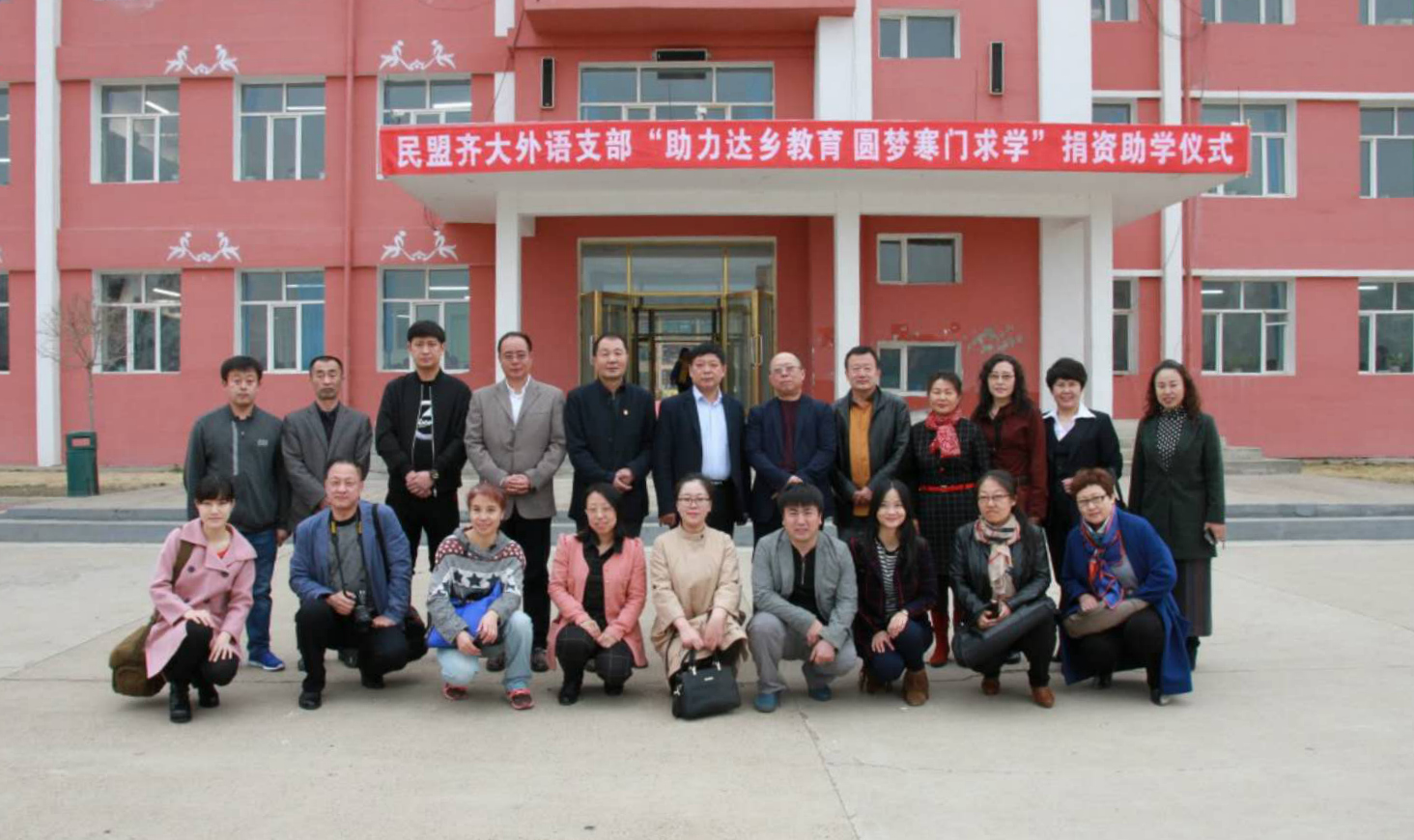 4月20人下午,達族中學的師生在放學后迎來了一批遠道而來的客人。他們是由民盟齊齊哈爾大學基層委員會副主委兼民盟齊大外語支部主委鄂玉榮帶隊的支部盟員和盟友,同時民盟齊齊哈爾市委主委殷元虎、我校宣傳統(tǒng)戰(zhàn)部副部長孟憲國、民盟齊齊哈爾市委秘書長崔連海、民盟齊齊哈爾市委社會服務委員會辦公室主任趙勇也專程前來參加了此次活動。