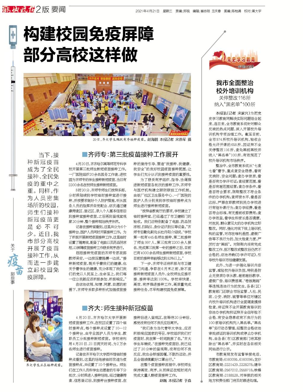 上一條:【齊齊哈爾日報】我市部分高校師生開展疫苗接種工作