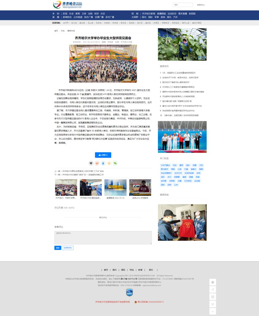 下一條:【鶴城晚報(bào)】齊齊哈爾大學(xué)舉辦畢業(yè)生大型供需見(jiàn)面會(huì)