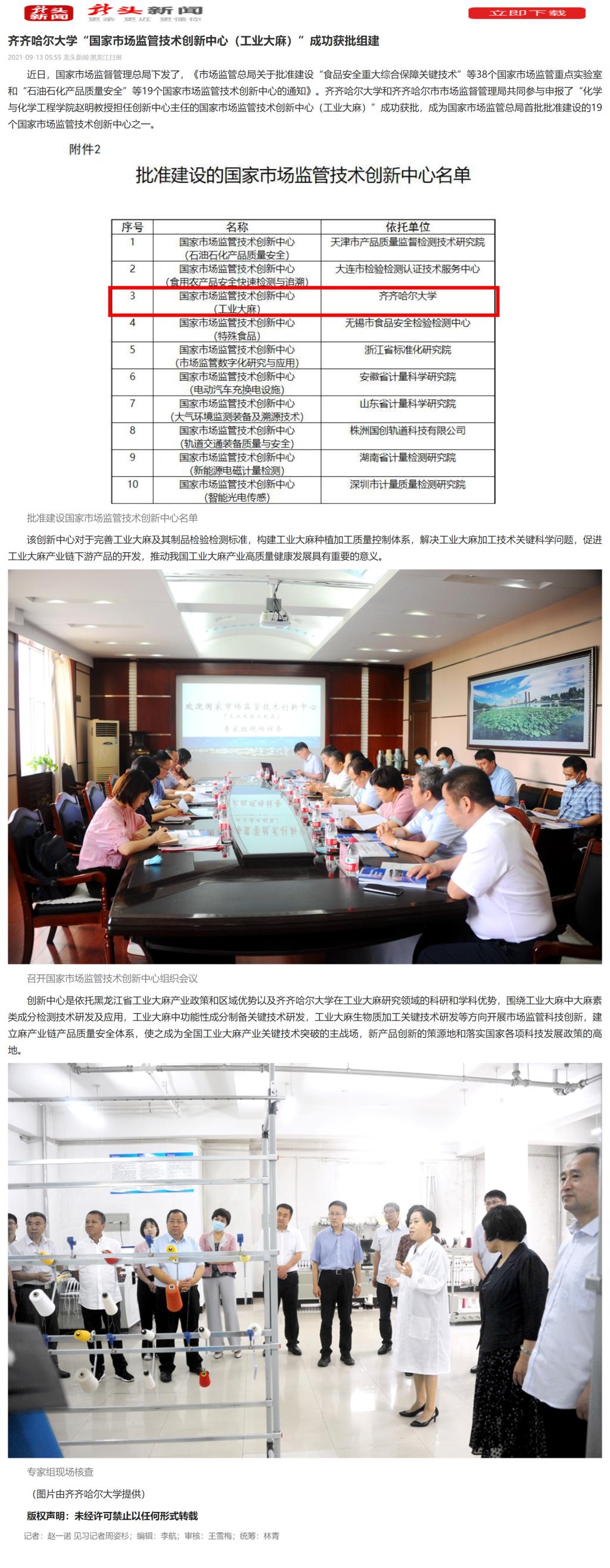 下一條:【央廣網(wǎng)】齊齊哈爾大學(xué)“國(guó)家市場(chǎng)監(jiān)管技術(shù)創(chuàng)新中心(工業(yè)大麻)”成功獲批