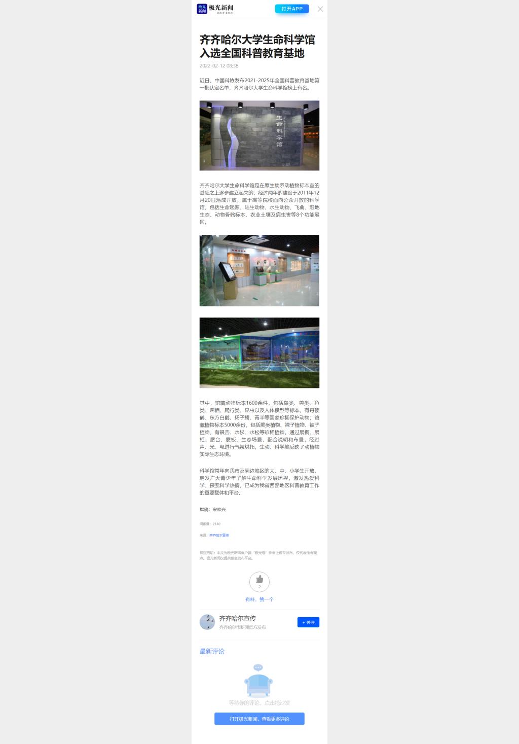 上一條:【龍頭新聞】齊齊哈爾大學(xué)生命科學(xué)館入選全國科普教育基地