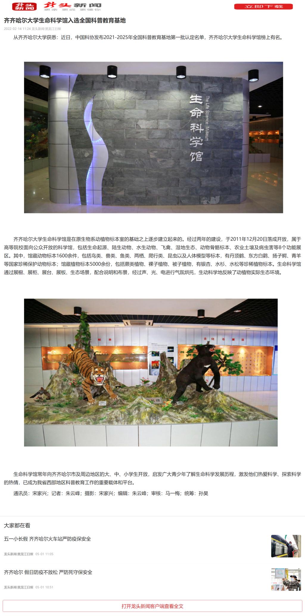 下一條:【極光新聞】齊齊哈爾大學生命科學館入選全國科普教育基地