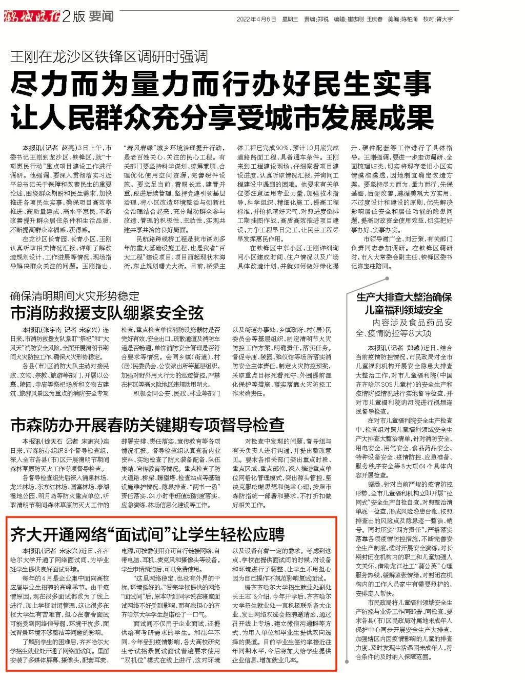 下一條:【鶴城晚報】給力!開通網(wǎng)絡(luò)“面試間”,齊大精準服務(wù)畢業(yè)生