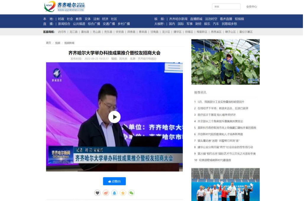 下一條:【齊齊哈爾市政府網(wǎng)站】齊齊哈爾大學(xué)舉辦科技成果推介暨校友招商大會
