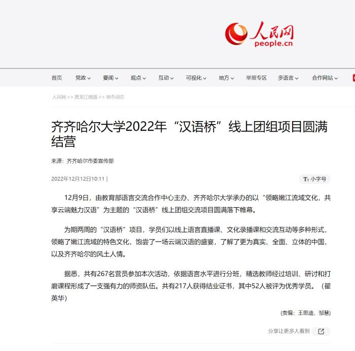 上一條:【新浪網(wǎng)】齊齊哈爾大學(xué)2022年“漢語橋”線上團組項目圓滿結(jié)營