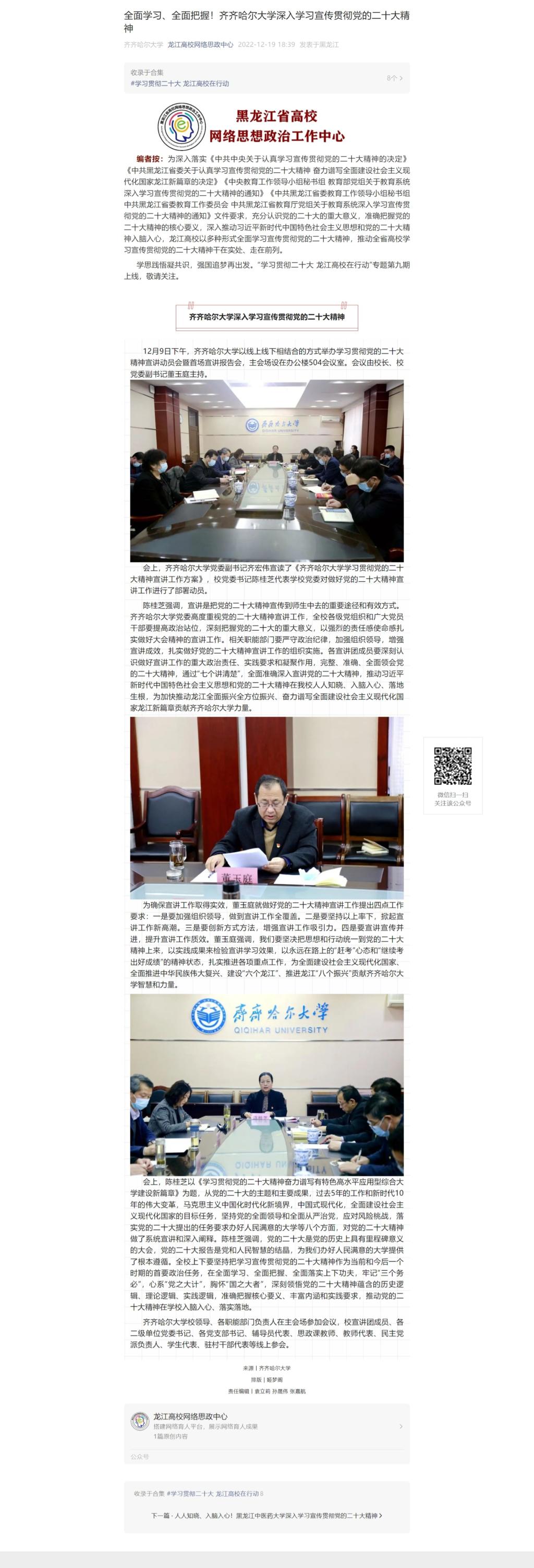 上一條:【學(xué)習(xí)強(qiáng)國(guó)】倍感振奮!龍江高校師生師生熱切關(guān)注中國(guó)共產(chǎn)黨第二十次全國(guó)代表大會(huì)(三)