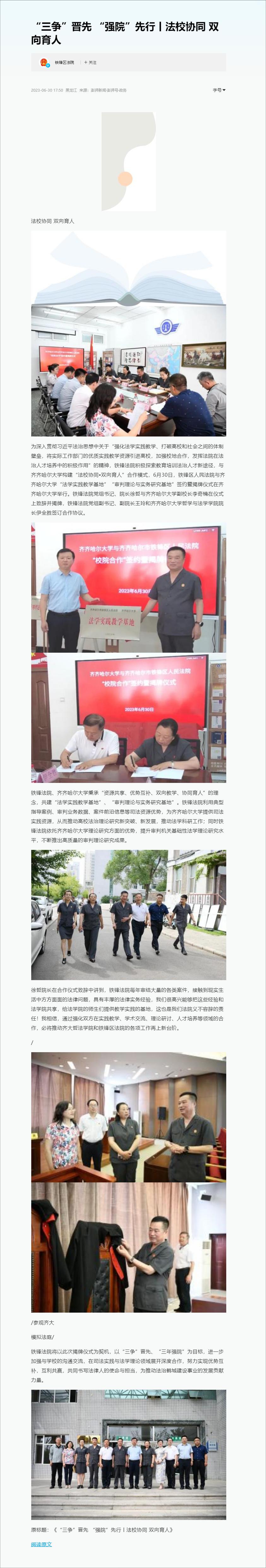 下一條:【澎湃新聞】雙向教學(xué)協(xié)同育人——齊齊哈爾市中級(jí)人民法院和齊齊哈爾大學(xué)開啟“院校合作”新篇章