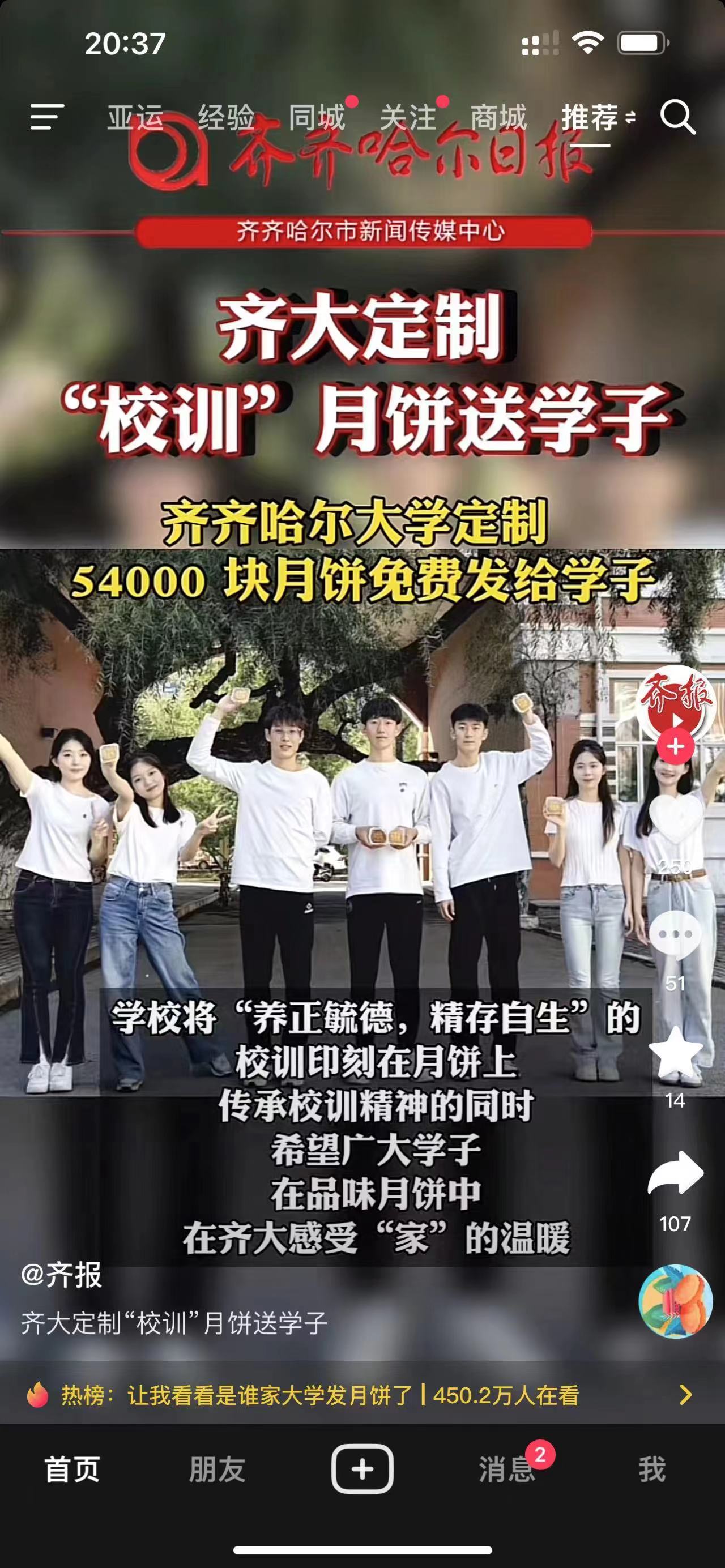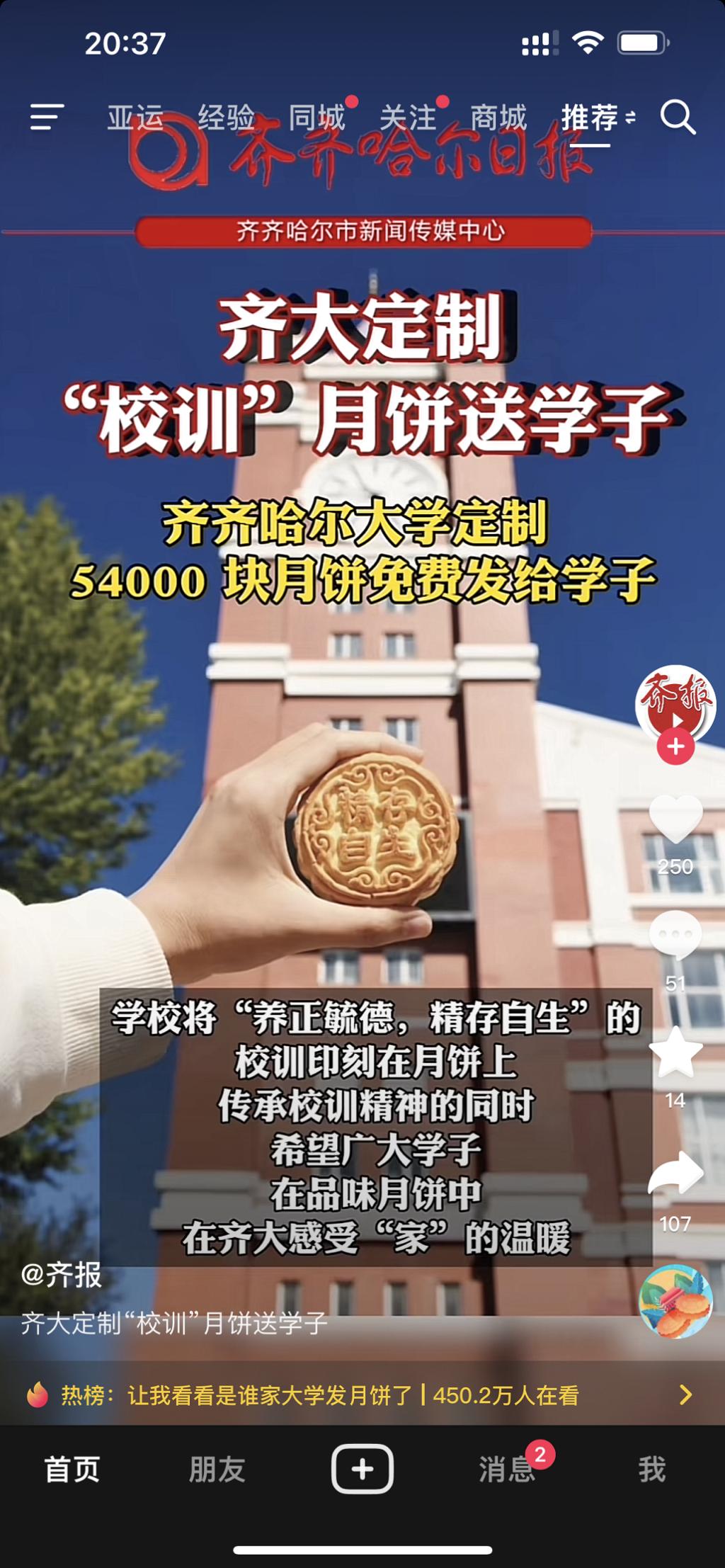 下一條:【齊齊哈爾新聞網(wǎng)】齊齊哈爾大學定制54000塊月餅免費發(fā)給學子