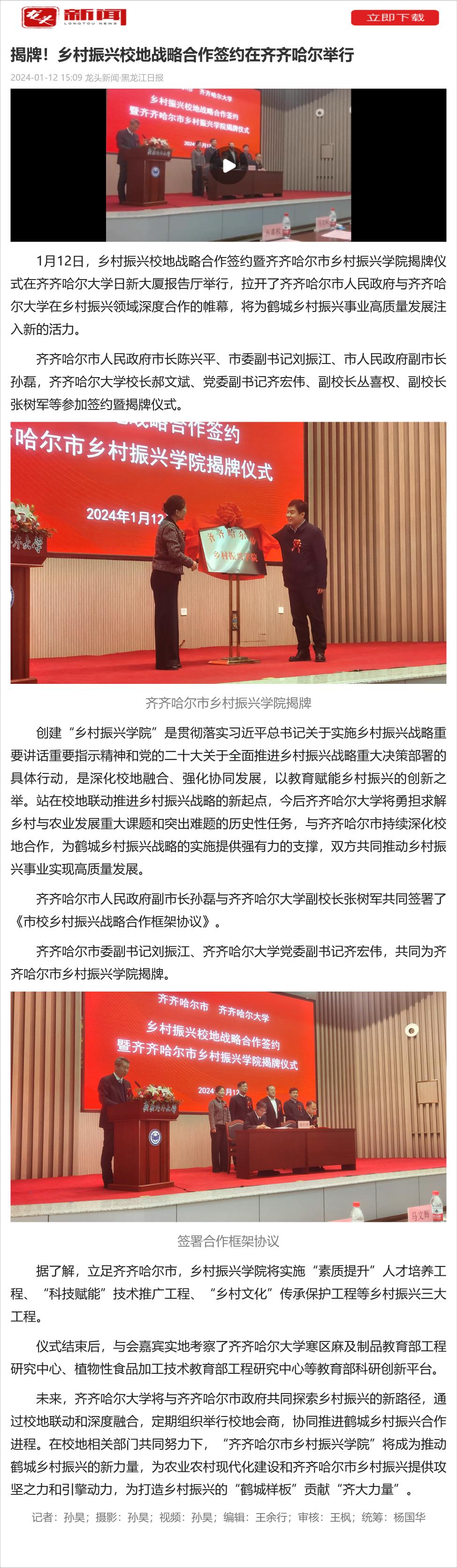 下一條:【人民網】齊齊哈爾市人民政府與齊齊哈爾大學舉行校地戰(zhàn)略合作簽約暨揭牌儀式