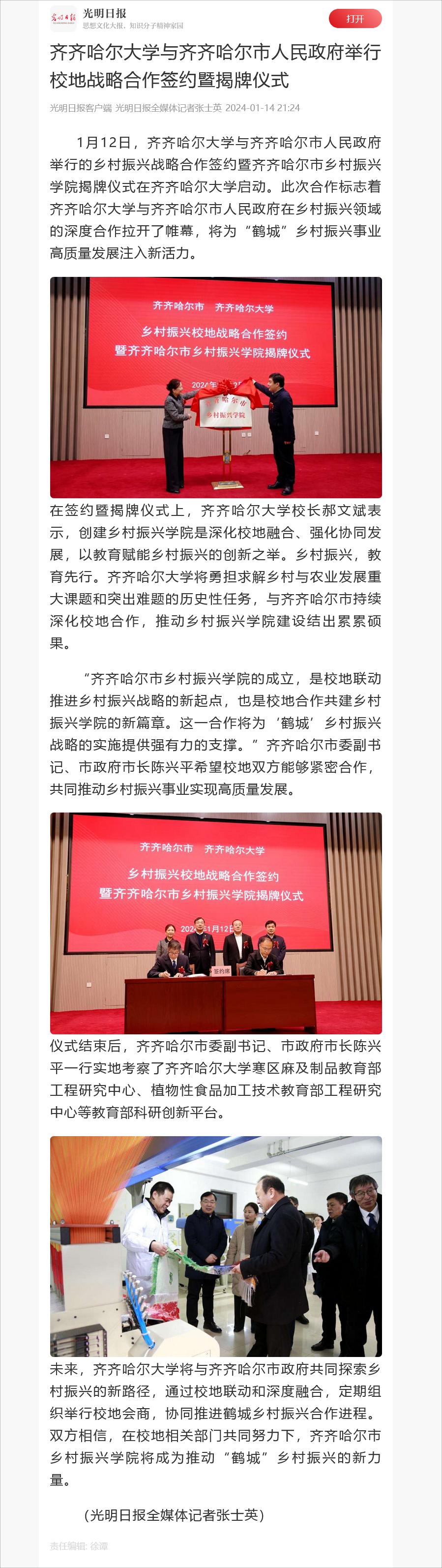 下一條:【人民日?qǐng)?bào)】深化校地合作!齊齊哈爾市鄉(xiāng)村振興學(xué)院揭牌