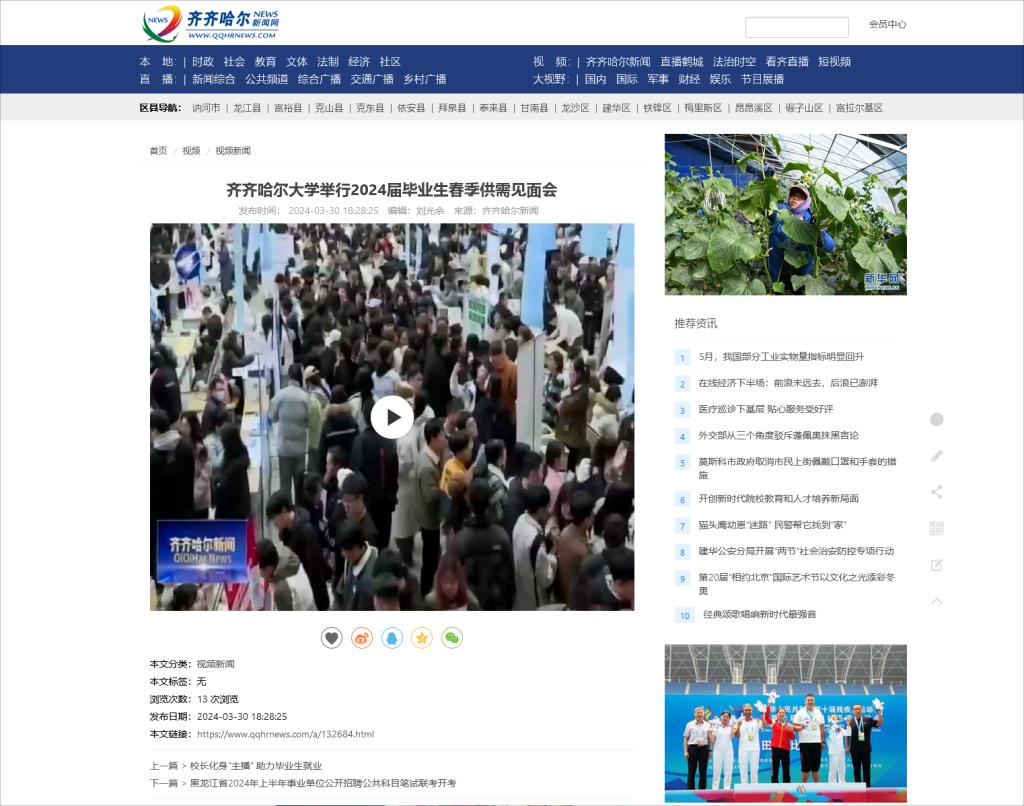 下一條:【齊齊哈爾新聞】齊齊哈爾大學2024屆畢業(yè)生春季供需見面會