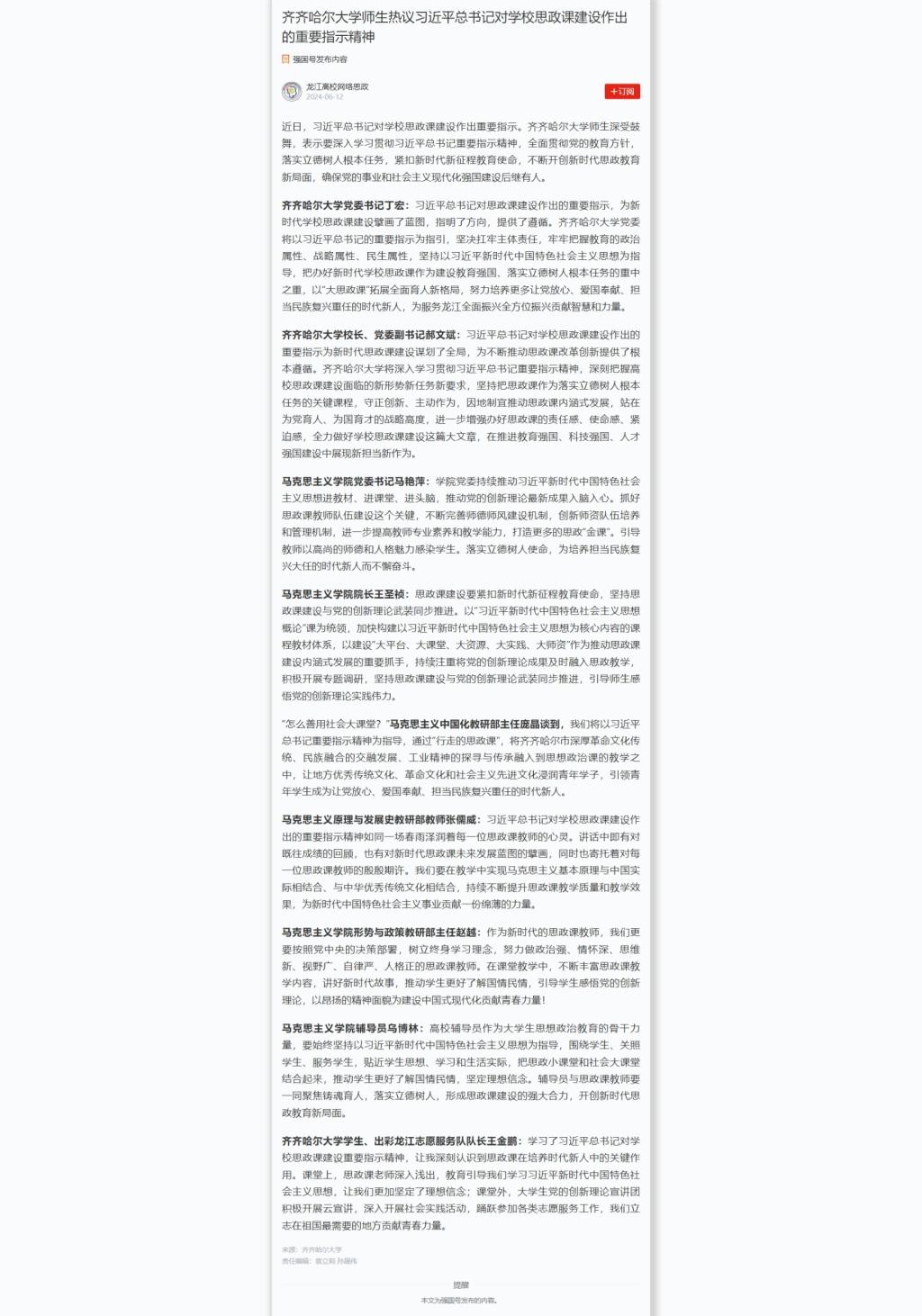 下一條:【學(xué)習(xí)強國】齊齊哈爾大學(xué)師生熱議習(xí)近平總書記對學(xué)校思政課建設(shè)作出的重要指示精神