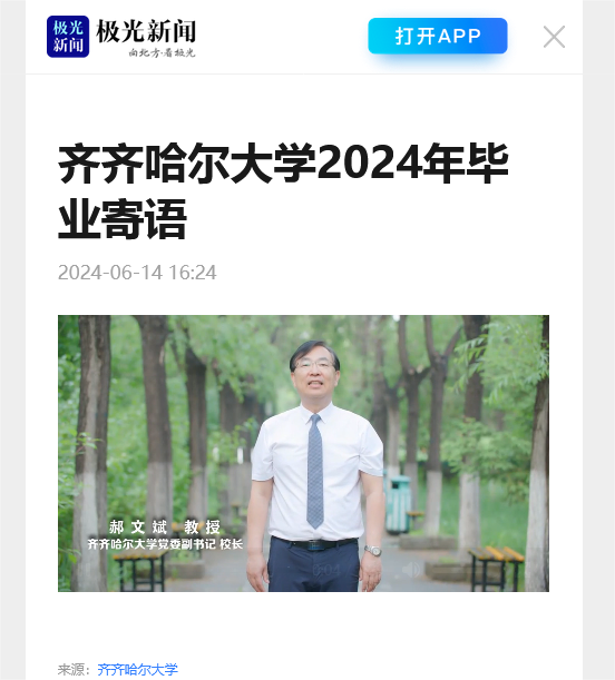 上一條:【極光新聞】齊齊哈爾大學(xué)舉行2024年畢業(yè)典禮暨學(xué)位授予儀式