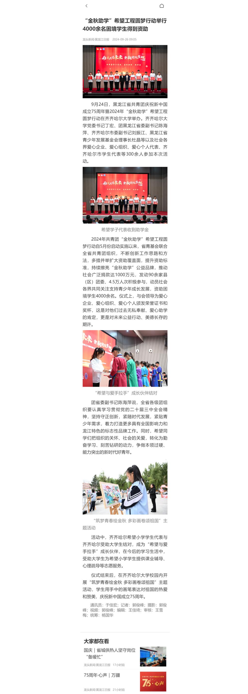 上一條:【龍頭新聞·生活報(bào)】“金秋助學(xué)”希望工程圓夢行動(dòng)舉行 4000余名困境學(xué)生得到資助