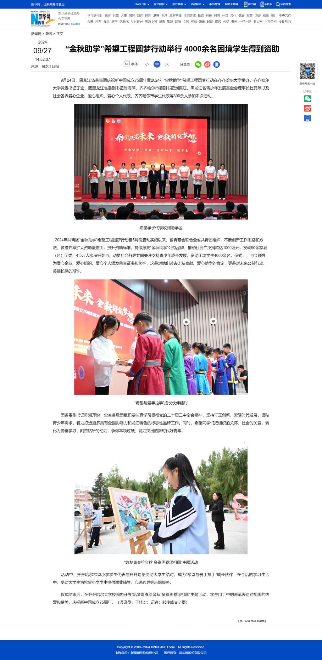 上一條:【齊齊哈爾日?qǐng)?bào)】團(tuán)省委“金秋助學(xué)”助學(xué)金發(fā)放儀式在齊大舉行
