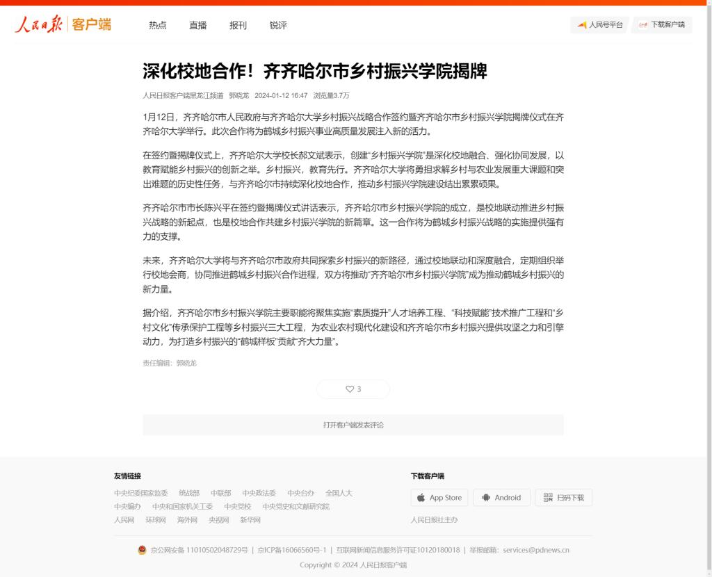 下一條:【黑龍江網】齊齊哈爾大學與齊齊哈爾市人民政府舉行校地戰(zhàn)略合作簽約暨揭牌儀式