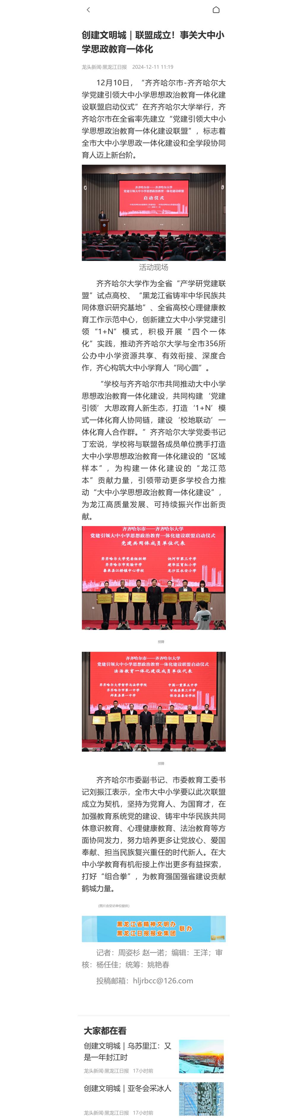 上一條:【龍頭新聞·黑龍江日?qǐng)?bào)】齊齊哈爾市—齊齊哈爾大學(xué)黨建引領(lǐng)大中小學(xué)思想政治教育一體化建設(shè)聯(lián)盟啟動(dòng)