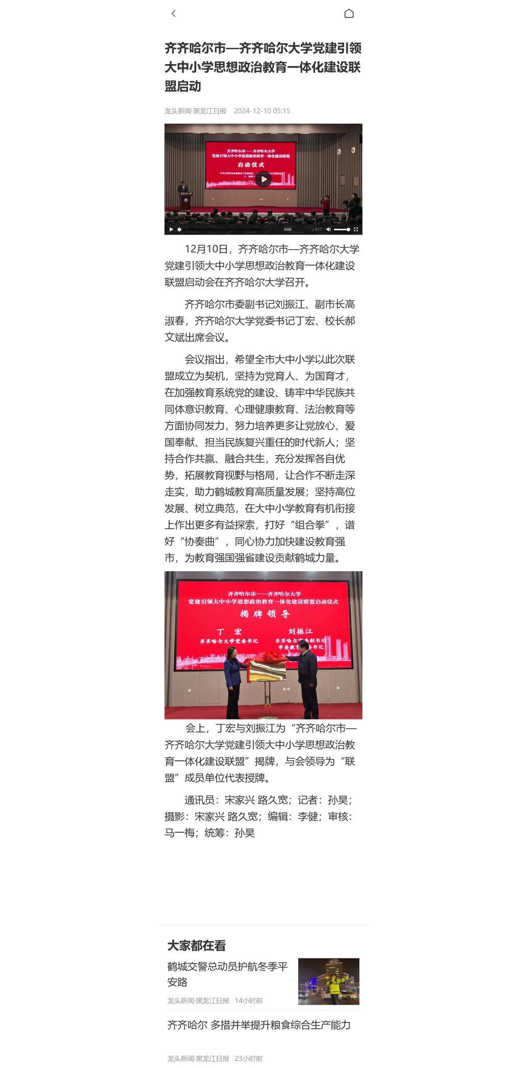 上一條:【龍頭新聞·黑龍江日?qǐng)?bào)】聯(lián)盟成立!事關(guān)大中小學(xué)思政教育一體化