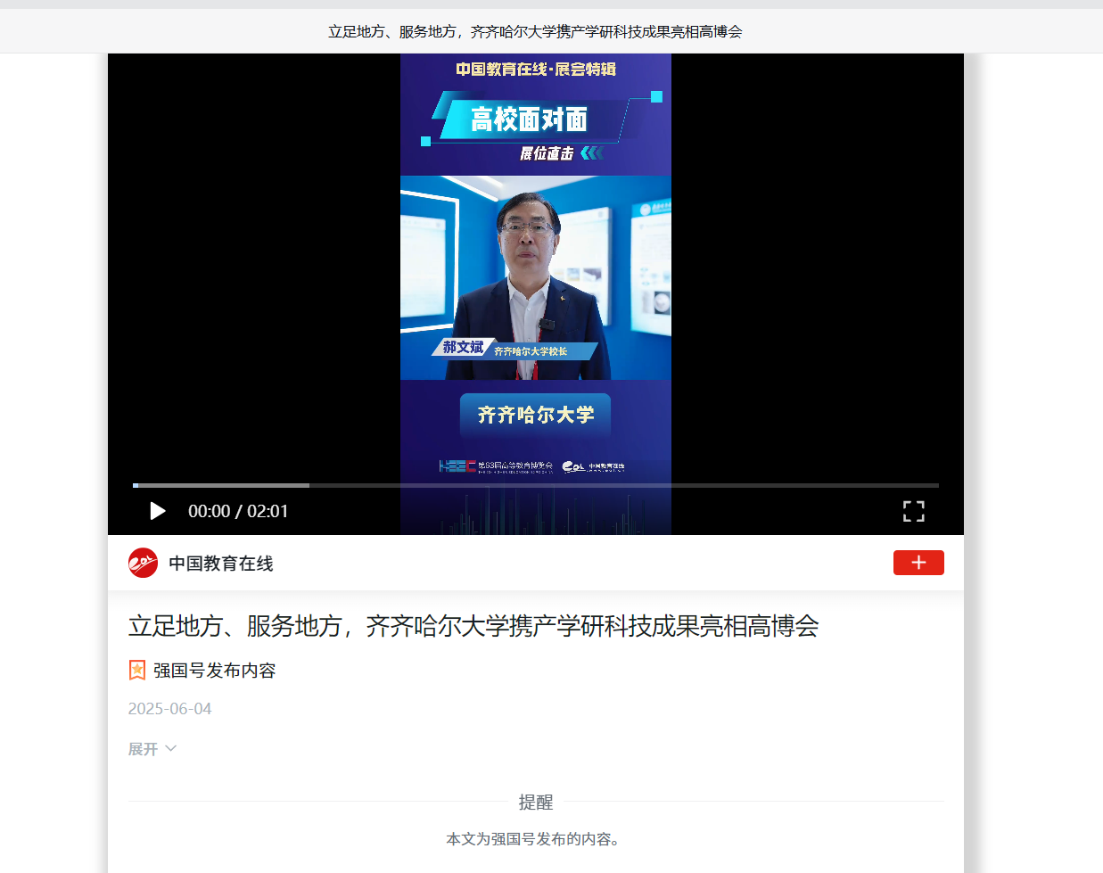 下一條:【央視頻】高校面對(duì)面丨齊齊哈爾大學(xué)展位直擊