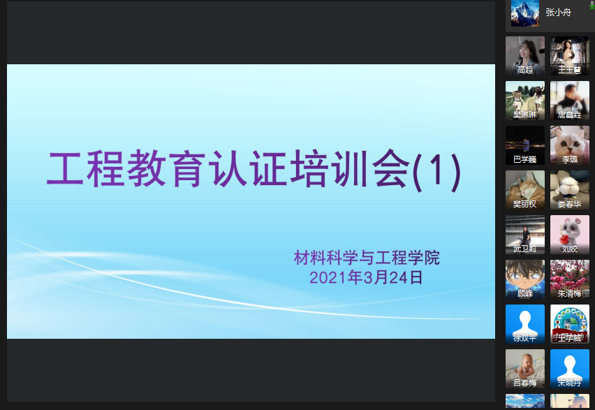 3月24日下午,我院面向全體教師舉辦了第一期工程教育認(rèn)證培訓(xùn)會(huì),由高分子材料科學(xué)與工程專業(yè)系主任王宇威主講。會(huì)議采取線上線下相結(jié)合方式進(jìn)行,院領(lǐng)導(dǎo)班子成員、各系辦中心負(fù)責(zé)人在6教314會(huì)議室,其他教師通過企業(yè)微信平臺(tái)參加會(huì)議。培訓(xùn)會(huì)由我院副院長張小舟主持。
