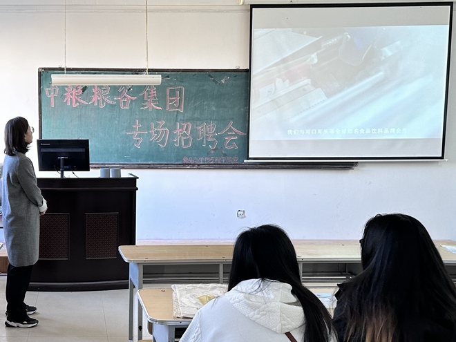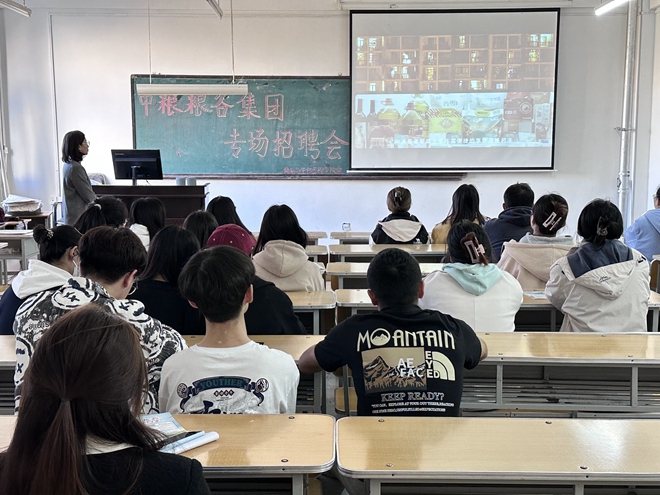 為深入實施就業(yè)優(yōu)先戰(zhàn)略,讓我院應屆生了解就業(yè)行情,明確就業(yè)的信心,充分發(fā)揮校園招聘主渠道作用。我院于2023年10月26日下午2點30分在延德樓330多媒體教室舉辦中糧糧谷集團專場招聘會。本次活動由中糧糧谷公司工作人員主講,我院部分20級應屆生參加此次活動。