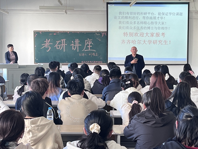 講座上,劉曉蘭教授從研究生就業(yè)主要領域,如何選擇考研院校,學科簡介,典型校友介紹等四個方面展開。重點展示了近幾年研究生報考和錄取人數(shù)的趨勢,通過對本院學生學習的專業(yè)內(nèi)容與科目進行深度刨析,提供了就業(yè)主要領域,為我院學生提供多樣化的考研選擇;要根據(jù)自身的復習情況和意愿,確定報考學科方向和單位;隨后,劉曉蘭教授向?qū)W生們展示了許多優(yōu)秀校友,如李秀梅博士,現(xiàn)中國農(nóng)業(yè)科學院飼料研究所副研究員,激勵我院學生以更加飽滿的熱情和更加積極的心態(tài)投入到備考當中,結合自身情況,樹立明確目標。講座結束后,我院學生倍感振奮、備受鼓舞,紛紛表示此次講座提高了大家對考研的認識、激發(fā)了大家的考研熱情,對幫助我院學生樹立考研志向,堅定考研信心,制定考研規(guī)劃有重要的推進作用。